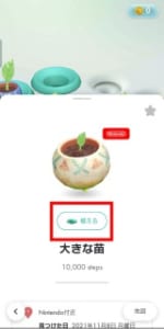 すると、右上にNintendoのマークがついた大きな苗があるのでタップします。次に、植えるをタップすれば、スロットへのセット完了です。