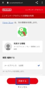 ニンテンドーアカウントの情報利用のページが表示されるので、確認した後同意するをタップしてください。