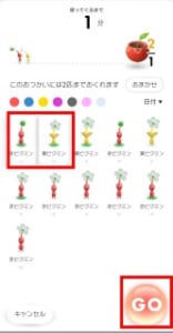 ピクミンを選択した後、GOをタップするとおつかいが始まります。