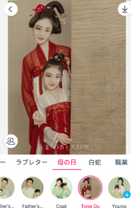 そうすると顔交換可能なテーマを掲載したカテゴリ一覧が表示されます。上部にある【人気】や【SALE】【鼠年】と書かれている部分は、左右にスクロールすることができ、カテゴリを自由に選択可能です。