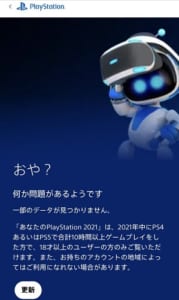 [更新]この画面しか表示されず、目的である「あなたのPlayStation 2021」の情報が一向に取得できない状態に陥っています。