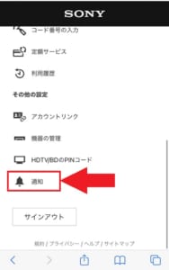 メニュー下部にある通知をタップします。