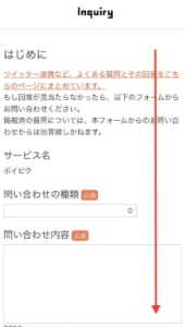 ページの一番下まで移動したら、お問い合わせをタップします。