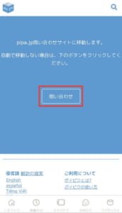 「問い合わせサイトに移動します。」と表示されたら問い合わせをタップしてください。