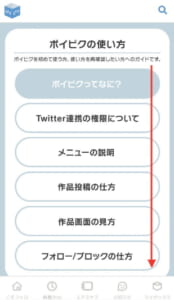 ポイピクの使い方のページが表示されるので、下までスクロールします。