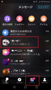 下のメニューバーから「メッセージ」をタップしてブロックしたいユーザーのメッセージを開きましょう。