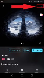 ユーザーのマイページが表示されるので、右上に表示される「・・・」をタップ。メニューが表示されるので「ブロックする」をタップ。