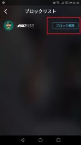 ブロックリストに表示されるユーザーの右側にある「ブロック解除」をタップ。これでブロックが解除されます。