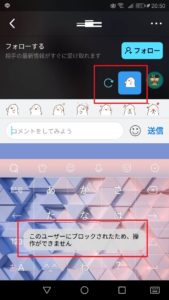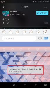 また、コメントをしようとすると「このユーザーにブロックされたため、操作できません。」と表示されます。