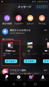 例えば、フォロワーさんの曲を聞きたい場合、下のメニューバーから「マイページ」をタップして「フォロワー」をタップ。