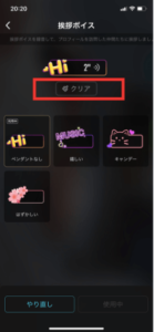 すると一番上に登録した挨拶ボイスがあるので、下のクリアボタンをクリックします。