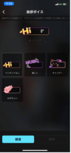ポケカラでは元々プロフィール画面に自己紹介文を登録することができましたが、挨拶ボイスでは新たに追加して録音で自己紹介をすることができます。