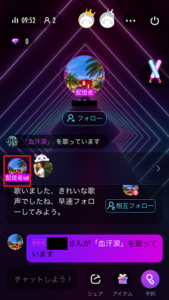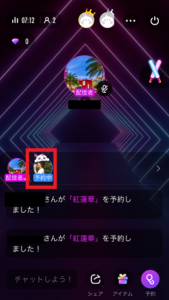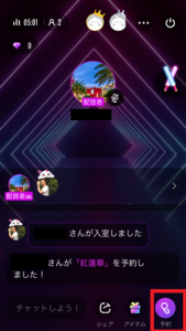 ルームの画面真ん中にある参加者のアイコンからプレゼントを贈りたいユーザーのアイコンをタップしましょう。