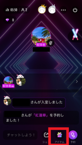 ちなみに、ルームの右下に表示されているアイテムボタンからもプレゼントが可能です。