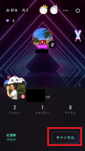自分が予約した曲をキャンセルしたい場合は、画面の真ん中に表示される自分のアイコンをタップします。