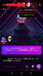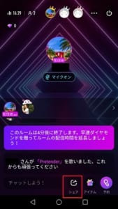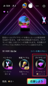 ルーム作成者の配信時間を延長してほしい場合は、アイテムのダイヤモンドを利用して延長することができます。