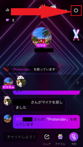 PokeRoomで歌った曲を保存したい場合は、歌い終わった後に右上に表示される×(終了)をタップしましょう。