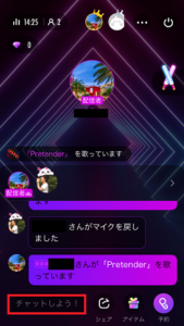 ルームに入ると下にチャット欄があるのでタップしてみましょう。