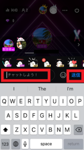 スマホのキーボードが表示されるので、文字を入力して右側にある送信をタップすれば、チャット送信完了です。