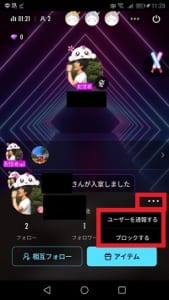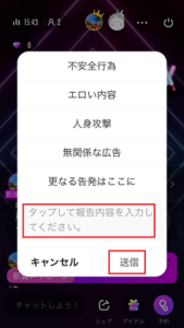 配信中に迷惑行為をしてくるユーザーがいる場合は通報機能を利用してみましょう。