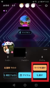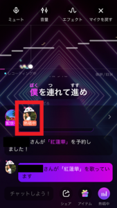 歌っている最中に配信者にマイクを戻したい場合は、画面真ん中に表示される自分のアイコンをタップしましょう。