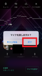 「マイクを戻しますか?」と聞かれるので戻すをタップすることで、配信者にマイクを返却できます。