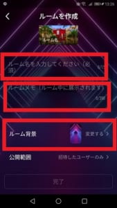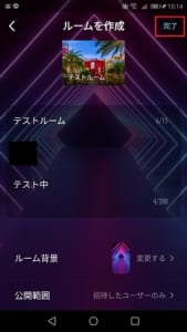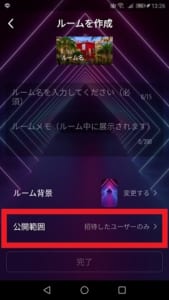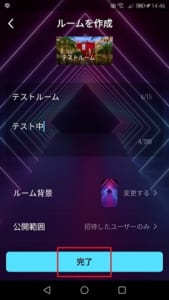 公開範囲を選んだ後は、一番下に完了ボタンが表示されるので、タップしてルーム作成完了です。