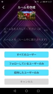 ルーム作成の画面が表示されたら、ルーム名・ルームメモ(どんなルームなのか詳細を記入)を入力後、ルーム背景をタップしてください。
