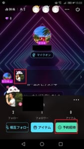 曲の予約をするにはまず、ルームに入り右下にある予約をタップします。
