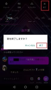「歌を終了しますか?」と聞かれるので、終了をタップします。