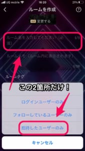 そこで忘れてはいけないのが「公開範囲」の設定です。一人カラオケを楽しみたいのであれば絶対、招待したユーザーのみをタップしてください。