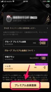 プレミアム会員登録をタップし、表示された認証方法を実行し、課金完了の表示出れば有料会員の登録完了です。