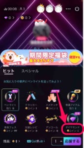 画面左上のダイヤマークをタップします。そうすると現在ルームにあるダイヤの数の下に残り時間を確認することができます。