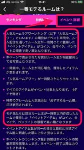 次に、右側にあるイベント詳細をタップして、イベントの内容を確認します。