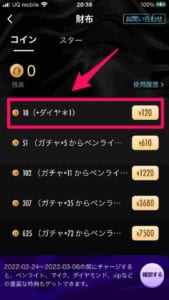 次に、一番安いコイン10(+ダイヤ1)の120をタップします。
