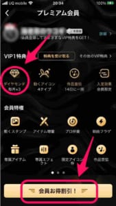 ダイヤモンドを確実に手に入れる方法ですが、ほかにもたくさんの特典があるのでそちらのほうがメインになってきます。有料会員になる手順を解説します。