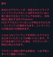 ポケモンGOからストライク1が適用されるという警告が来る