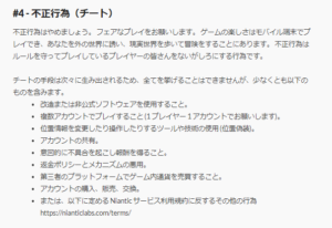 ポケモンGOでは不正行為(チート)扱いされる行為が多いです。