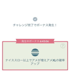 上記でご紹介した通り、チャレンジ期間が有効の間はナイススロー以上の場合には通常のアメにボーナス分が追加されたものがもらえるはずです。