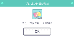 今回のミュージックカード補填はv2.1.0のアップデートより前に、イベントストーリーを全て読んだ方+チュートリアル突破差分で最大で528枚もらえます。