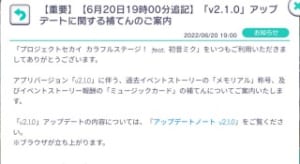 v2.1.0へアップデートしていない場合、補填分のミュージックカードがプレゼントボックスに入っていない場合があります。
