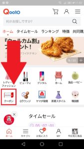 Qoo10のトップページにはカテゴリ内に「クーポン」という場所があります。