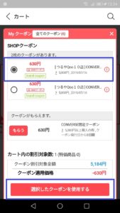 最後に「選択したクーポンを使用する」をタップしましょう。