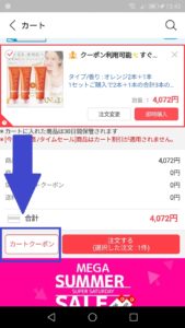 クーポンが適用されると上の画面のように割引金額が表示され、合計金額も安くなっていることがわかります。
