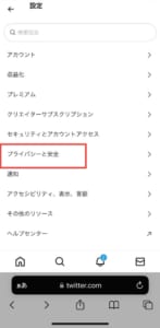 Xでセンシティブな画像をタップしても表示されない不具合が発生している場合、Webから設定とプライバシーからプライバシーと安全をタップしましょう。