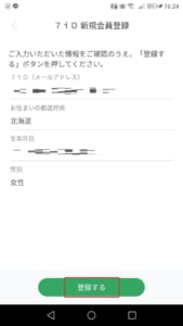 登録内容に間違いないか確認画面が表示されるので「登録する」をタップ。