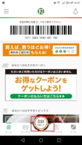 ちなみに、この会員コードは「ホーム」「クーポン」「トピックス」で常に表示されています。