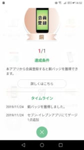 ちなみに、セブンイレブンアプリに登録した際にバッジを貰うことができました。