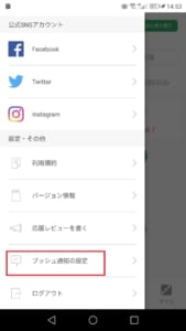 メニューを下にスクロールしていき、「プッシュ通知の設定」をタップ。