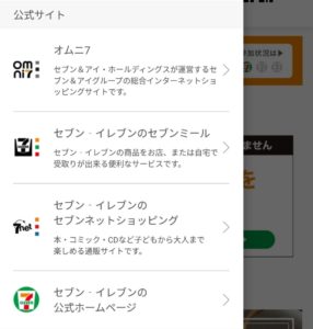 例えば、「アルバイト情報」「セブンスポット」や「オムニ7」「セブンネットショッピング」などセブンイレブン関連の外部サイトへ移動することが可能です。
